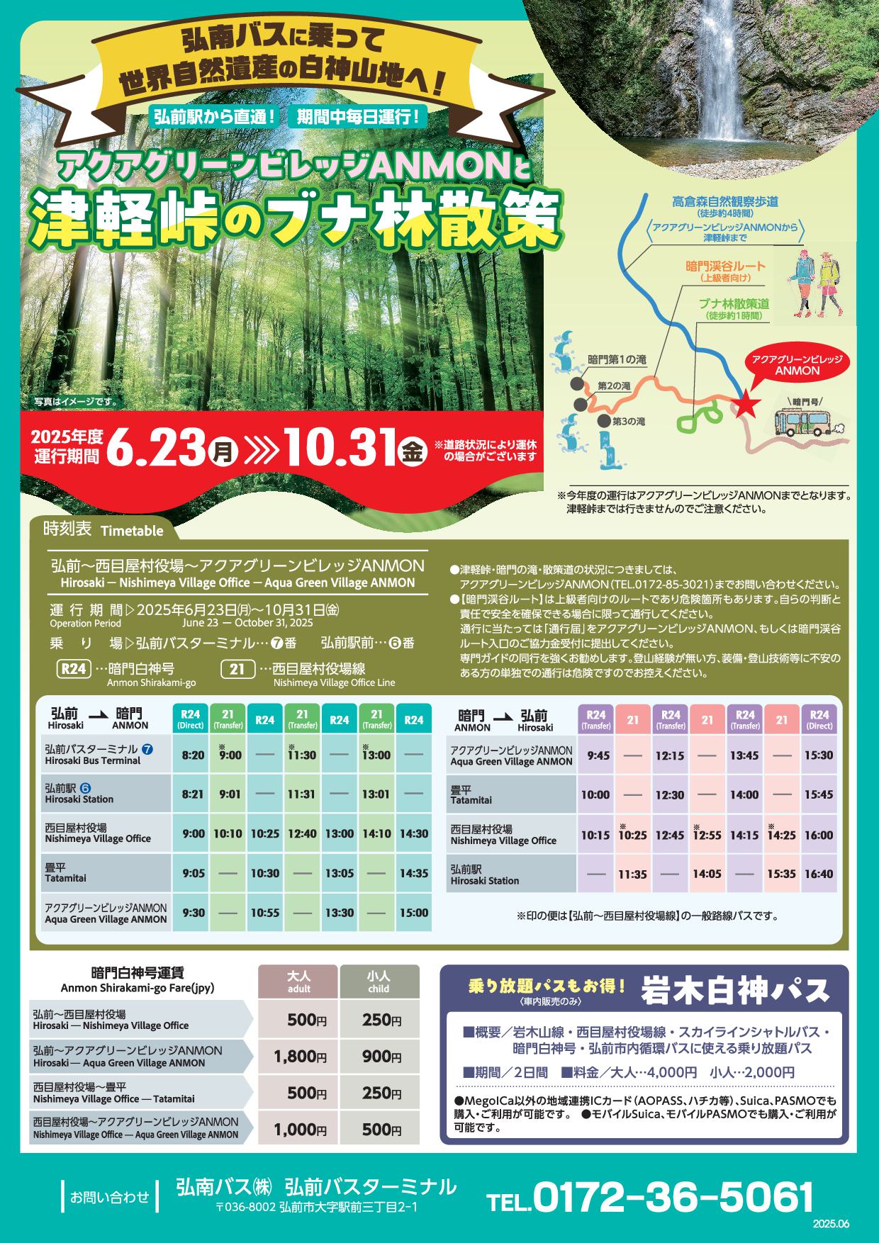 > 白神山地(西目屋村)行きバス『暗門白神号』