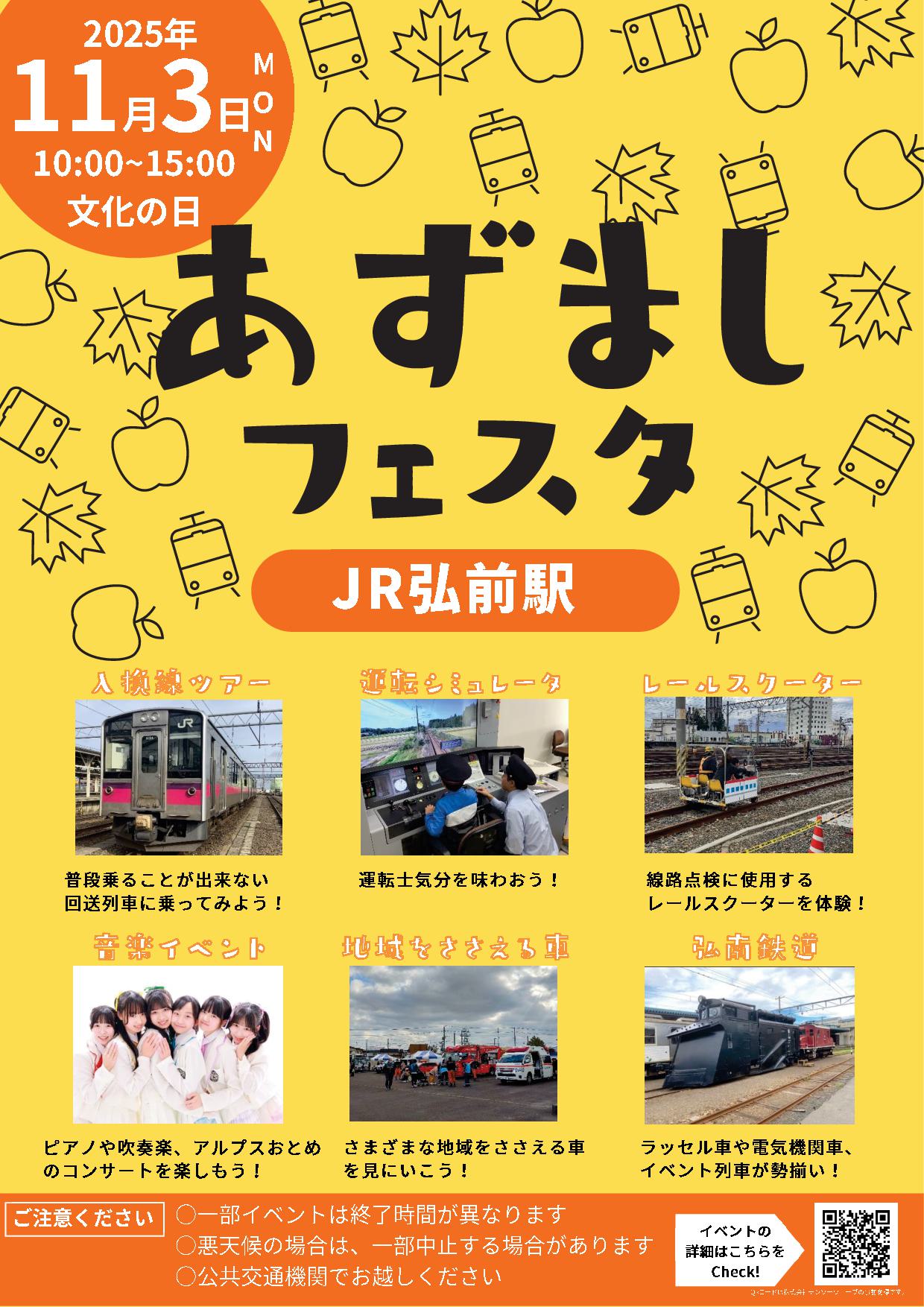 弘前駅自由通路等にぎわい創出事業実行委員会と弘南鉄道株式会社、JR弘前統括センターは、地域の活性化とふれあいを目的とした「あずましフェスタ2025」を開催します。