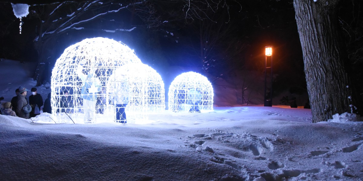 雪燈籠は、長くて辛い北国の冬を楽しく演出しようと市民手作りで行われます。