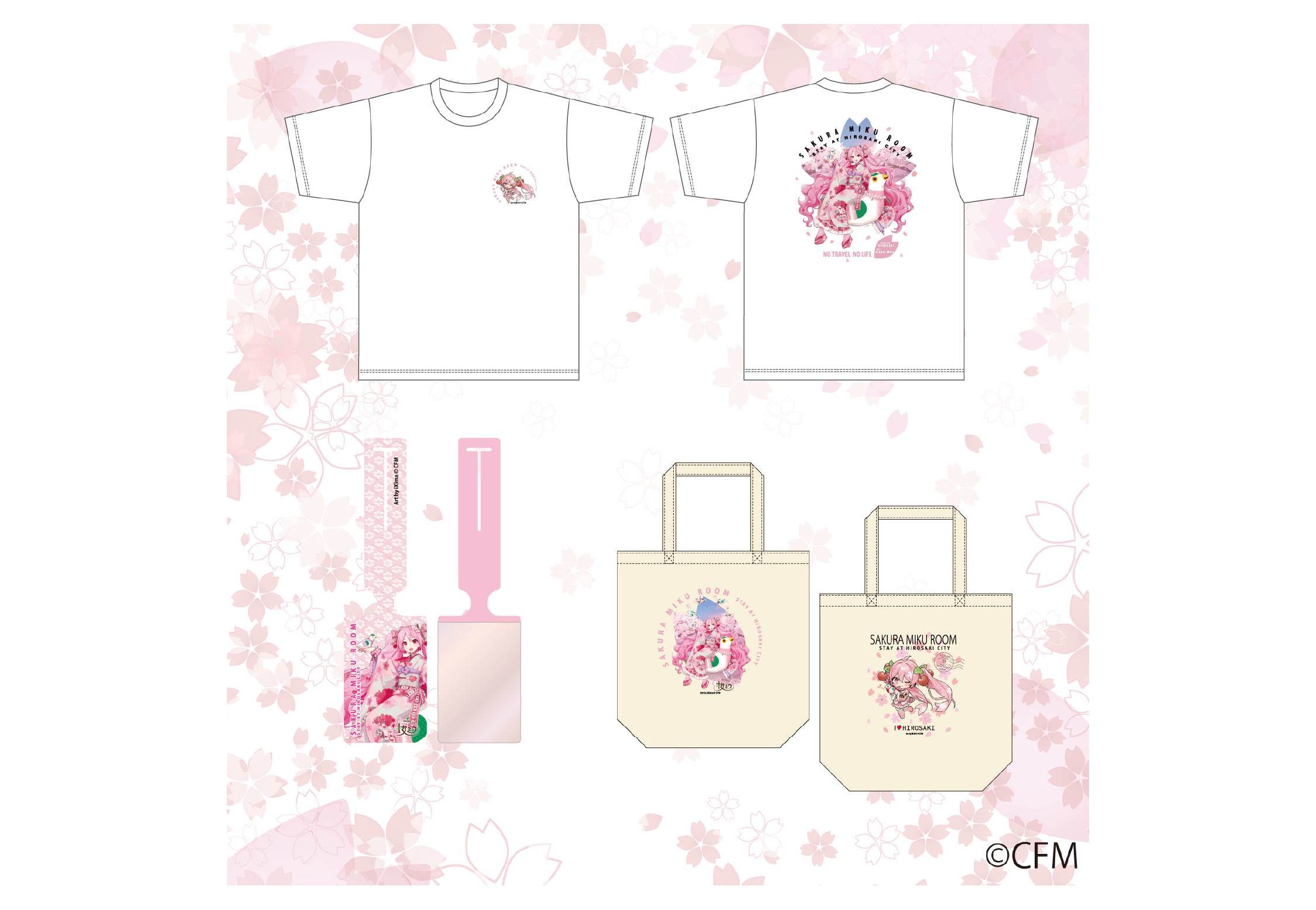 弘前の魅力を紹介しながら楽しむ桜ミクをイメージして描かせていただきました!春らしい明るい色合いを意識しており、「弘前さくらまつり」と一緒に楽しんでいただけると嬉しいです。