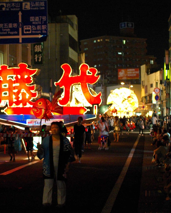 히로사키의 여름을 상징하는 '히로사키 네푸타 축제'가 매년 8월 1일부터 7일까지 열립니다. 약 80대의 거대한 네푸타가 거리를 가득 메우는 이 축제는 유료 관람석에서도 편안하게 감상할 수 있습니다.