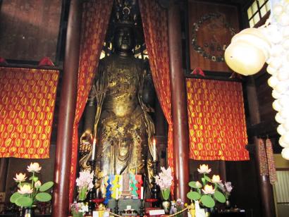 江戸時代前期の建築物です。県下最大の木造仏で、東北地方でも類例まれな巨像「十一面観世音立像」が祀れています。