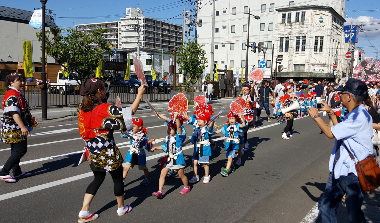 에도 시대 츠가루에서 사육되던 금붕어 '츠가루 니시키'를 본뜬 귀여운 네푸타를 든 아이들의 모습.지역 커뮤니티로서의 네푸타